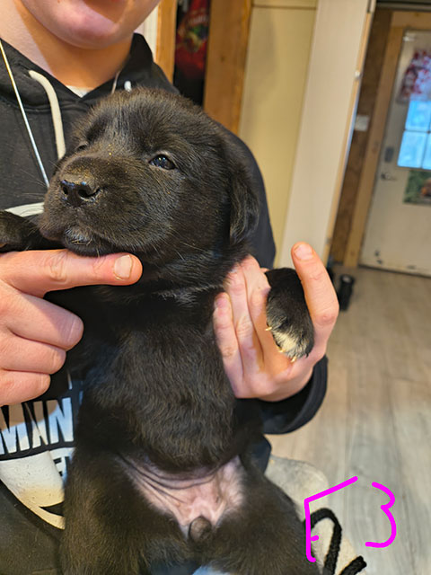Female 3 two toes back white front toes left white. Red collar.